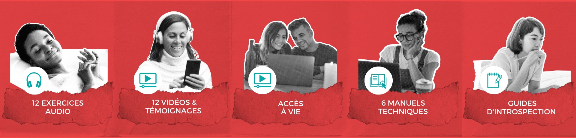 C’est la combinaison de ressources multimédias, de témoignages inspirants, d’ exercices thérapeutiques, de questions d'introspection et de séances de coaching. Tout cela aide à surmonter les barrières personnelles.